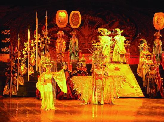 The show is only part of a replica Song dynasty Hangzhou, with many streets with shops and costumes for the tourists to wear, and trinkets to buy, and a water-splashing festival and torch festival and an embroidered ball throwing event (a husband selection process, maybe as good as any).