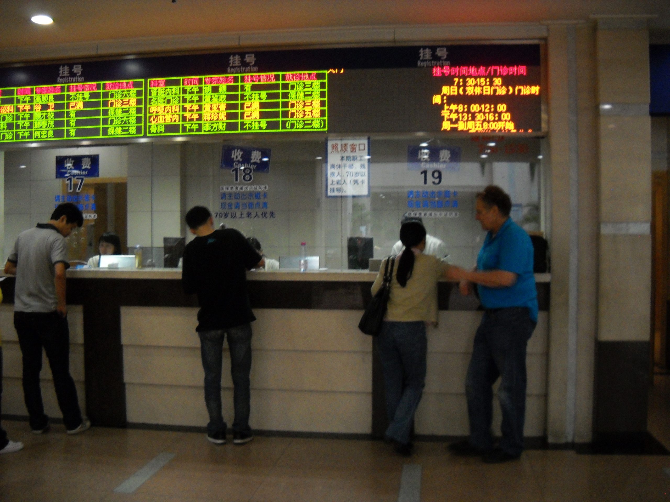 Once in the door, one is directed to the payment window.   This is the Chinese version of giving people at the front desk your insurance card.   No need to sign waivers of anything. No need to show passports or proof of employment at the school.  “Sick?  Ok. Pay up.  Sign here.”