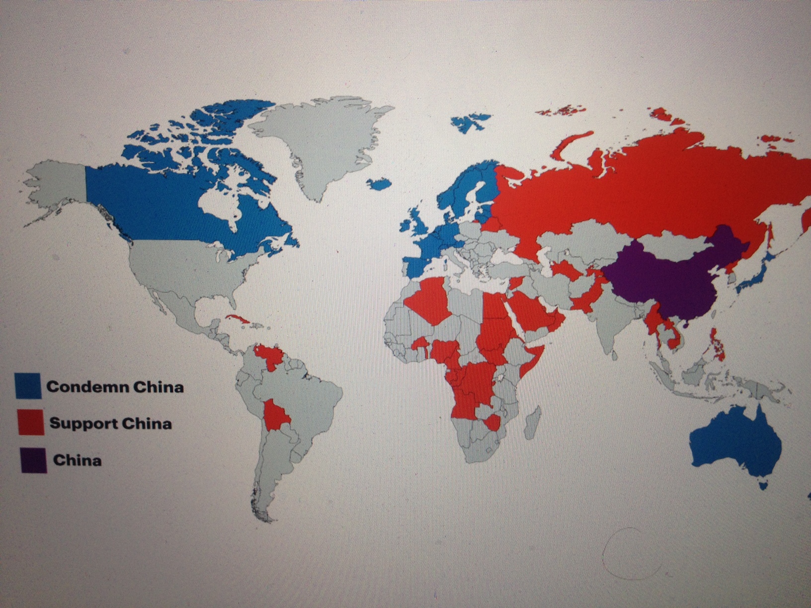 What stands out is the US failure to condemn Chinese actions, although we understand that to be attributable to the views of our current dear leader.  The US dropped out of the Human Rights council in 2018.