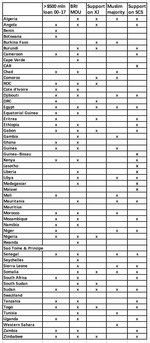 No middle eastern or southern Africa country joined in the condemnation. Several southern African countries have more than 25% of their GDP in debt owed to China.